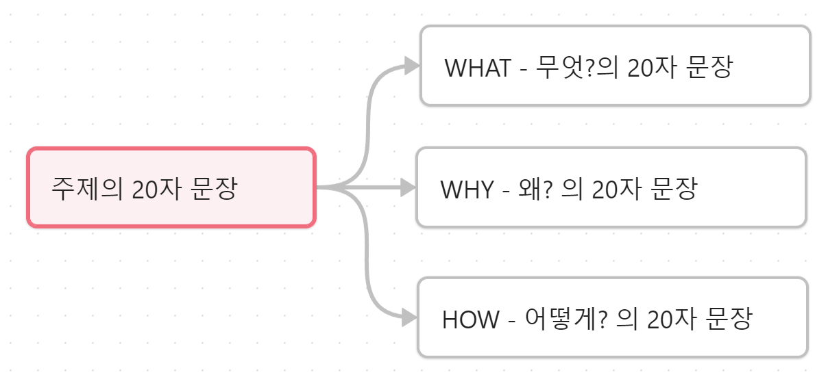 이 메모법은 주제와 3가지 질문 중 하나에 답하는 구조가 서로 맞물려 이어질 수 있다.